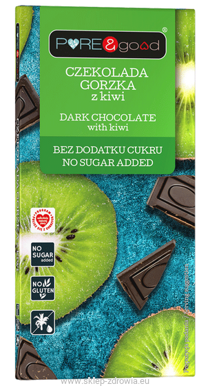 Czekolada gorzka z kiwi bez cukru, bezglutenowa 75 g Pure&Good