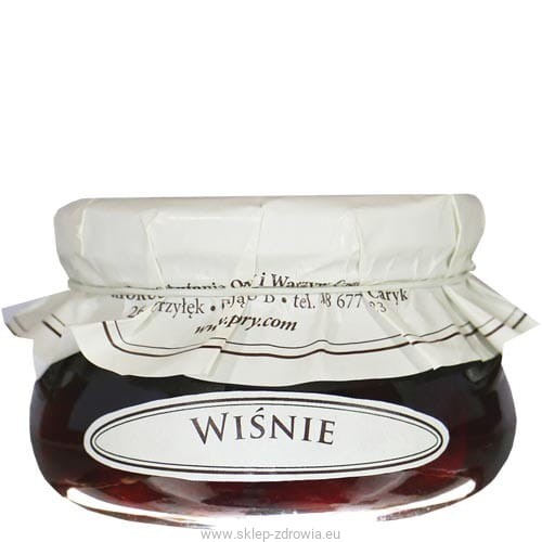 Wiśnie to owoce o bardzo małej ilości pektyny, więc konfitura jest dość rzadka. Zdecydowaliśmy się dodać do niej odrobinę mączki chleba świętojańskiego (naturalny zagęstnik), aby nieco zagęścić syrop zgodnie z życzeniem wielu naszych klientów. Mączka chleba świętojańskiego jest znanym od wieków, zdrowym pokarmem często dodawanym do posiłków dla niemowląt, dlatego wydała się nam najlepszym rozwiązaniem.