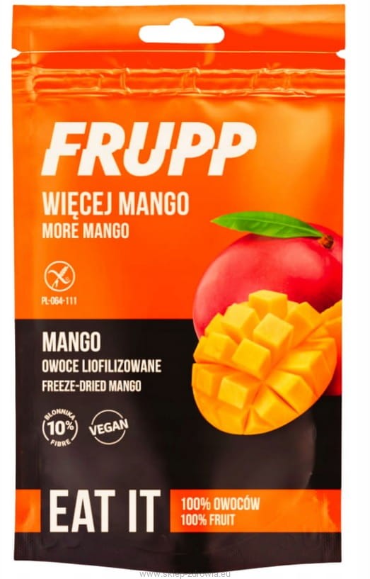 Idealna do spożycia bezpośrednio po otwarciu opakowania lub jako dodatek wzbogacający desery, ciasta, jogurty i napoje. Do wyprodukowania 100 g mango liofilizowanego zużyto 0,5 kg świeżego mango.
