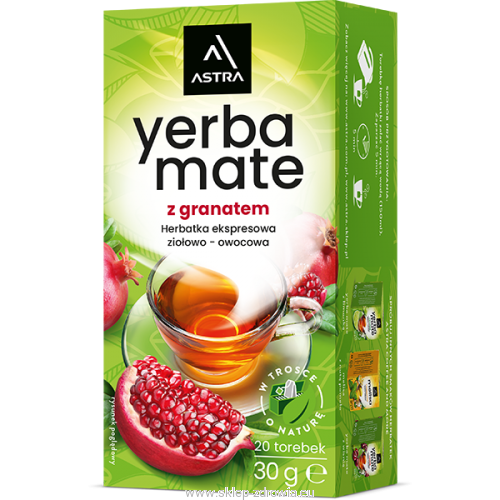 Herbatka ekspresowa Yerba Mate z granatem,ziołowo-owocowa 30g (20 torebek).