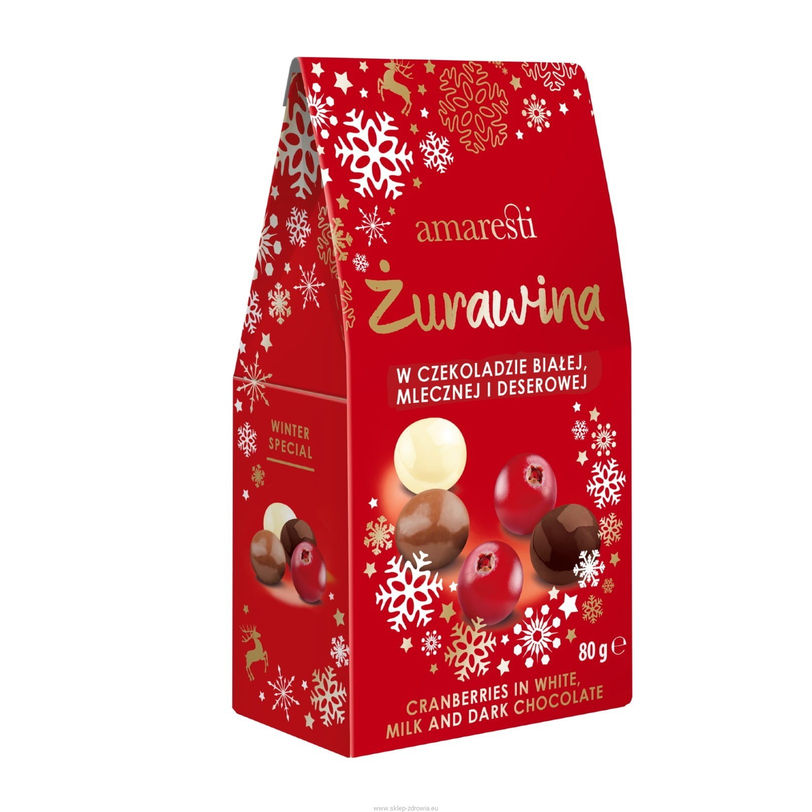 Żurawina w czekoladzie białej, mlecznej i deserowej 80g Amaresti